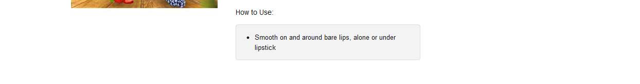 Moisturises - Moisturises dry and chapped lips Brightens - Lightens lips to match fairer skin tones