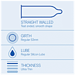 Durex brings to you the thinnest ever condoms for greater sensitivity and intimacy, while still providing a high level of protection. Each Durex condom is dermatologically tested to ensure strength and a high level of protection. Made of premium quality latex, Durex condoms are reliable. Durex Air condoms are designed to feel more natural, while transparent ultra-thin latex helps highlight sensitivity. They are walled fit for him, providing greater sensitivity to where it is needed the most.