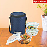 Signoraware Executive Borosilicate Glass Lunch Box Round, 3 pcs