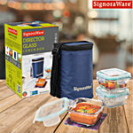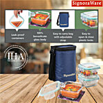 Signoraware Director High Borosilicate Bakeware Safe Glass Lunch Box Set With Bag - Clear