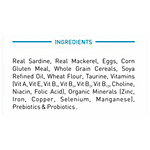 Sardine, Mackerel, Eggs, Corn Gluten Meal, Whole Grain Cereals, Soya Refined Oil, Wheat Flour, Taurine, Vitamins (Vit A, Vit E, Vit B1, Vit B6, Vit B2, Vit B12, Choline, Niacin, Folic Acid), Organic Minerals (Zinc, Iron, Copper, Selenium, Manganese), Prebiotics & Probiotics
