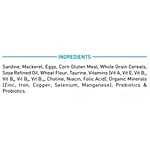 Chicken, Whole Dried Eggs, Corn, Rice, Wheat, Corn Gluten Meal, Fish Oil, Soya Refined Oil, Corn Oil, Lecithin, Essential Amino Acids, Minerals, Vitamins, Salt and Antioxidants.