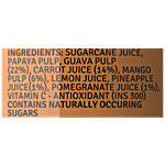 Sugarcane Juice, Papaya Pulp, Guava Pulp (22%), Carrot Juice (14%), Mango Pulp (6%), Lemon Juice, Pineapple Juice(1%), Pomegranate Juice (1%), Antioxidant/ Vitamin C (INS 300)