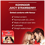 Enhance the intimacy of your most intimate moments with Kohinoor Juicy Strawberry flavoured condoms. These condoms, with their improved fragrance, flavour and make; promise you an enjoyable and intimate ride while providing the same level of reassurance and protection as a regular condom. The cherry flavour produces an exciting smell, while the raised dotted surface ensures more stimulation.