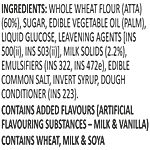 Wheat Flour, Sugar, Vegetable Shortening (Palm Oil). Liquid Glucose, Raising Agents - Ammonium Bicarbonate (503Ii), Sodium Bicarbonate (500Ii), Skimmed Milk Powder, Salt, Emulsifier -Soya Lecithin (322), Antioxidant -TBHQ (INS 319), Contains Synthetic Food Color Fdc Yellow No. 5 -Tartrazine (102) Artificial Flavours (Vanilla Butter). Contains Wheat And Soya Products. Allergen Warning: May Contain Traces Of Milk, Sulphites, Peanuts And Tree Nuts.