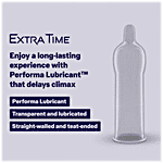 Enhance the intimacy of your special moments with the Durex Extra Time condoms. These condoms contain a special climax-control lubricant, Benzocaine, that helps him last longer while providing the same level of reassurance and protection as a regular condom.