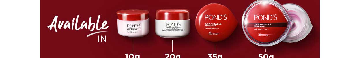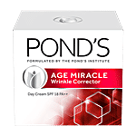Day in and day out, external influences like UV, pollution and stress can speed up the skin's natural ageing process, resulting in a greater than normal loss of collagen and elastin fibres. Pond's Age Miracle Wrinkle Corrector Day Cream SPF 18 PA++ is an anti ageing day cream made with Pond's most advanced technology - Retinol-C Complex, that penetrates the skin continuously to release powerful anti-ageing retinoid actives for 24hr non-stop. It can help reduce the appearance of fine lines and wrinkles from the inside, leaving skin that feels softer, more moisturized, and youthfully radiant on the outside.