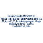Manufactured & Marketed by: Milky Mist Dairy Foods Pvt. Ltd., #43/1, 2, 3, Patakaranpalayam Village, Perundurai Taluk, Erode District, Tamil Nadu, India, 638057 FSSAI Licence No.: 10017042003191