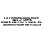 Manufactured & Marketed By:CREAMLINE DAIRY PRODUCTS LIMITED, 6-3-1238/B/1, ASIF AVENUE, RAJBHAVAN ROAD, HYDERABAD 500082, TELANGANAA