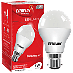 Illuminate your space with the Eveready 5-Watt LED Light Bulb, mercury-free, energy-efficient bulbs that provide 100 lumens per watt of cool day white light (6500K). These LED bulbs last nearly as long as three CFL bulbs, offering a 2-year warranty for peace of mind. With high efficiency, no glare, and uniform light distribution, they are perfect for various settings, from homes to schools, retail spaces, hostels, and bedrooms. Enjoy significant energy savings and low maintenance, while contributing to a greener environment with these long-lasting LED bulbs.