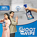 Lizol Power Bathroom Cleaner Triggers remove 99.9% of germs and eliminates staph and salmonella bacteria on hard non-porous surfaces. Also, it can be used on a variety of household surfaces, including Shower Doors, Tubs, Glazed ceramic tiles, Vanity tops, Sinks, Chrome fixtures, etc. It removes soap scum, limescale and has a clean, fresh scent.