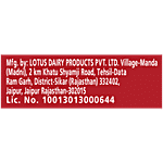 Manufactured by: Lotus Dairy Products Pvt. Ltd. Village-Manda (Madni), 2 km Khatu Shyamji Road, Tehsil-Data Ram Garh, District-Sikar (Rajasthan) 332402, Jaipur, Jaipur, Rajasthan- 302015