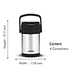 Milton Hot Meal 4 Insulated Thermosteel Lunch/Tiffin Box With Containers - Silver