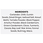 Coriander, chilly, Cumin, Black Pepper, kalmi, Turmeric, Ginger Powder, Mango Powder, Cardamom, Clove Bayleaf, Nutmeg Salt, Star Anise, Fennel, Mace.