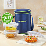 Borosil Glass Lunch Box - Microwave Safe Office Tiffin, ICY22RD3400, 400 ml (Set of 3)