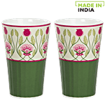 India Circus Chai/Lassi Glass - Pink & Green, Flower Print, 400 ml (Pack of 2)