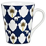 India Circus Milk Mug - Navy Blue & White, Elephant Print, 350 ml (Pack of 2)