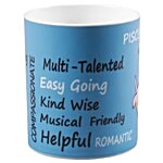 Claycraft Bonechina Milk Mug - Blue, Pisces Print, 350 ml