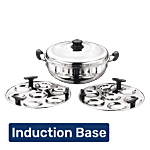 No Question askedKitchen Essentials Stainless Steel Multi Purpose Kadai Pot - 2 Idly Plates, Induction Base, With Steel Lid, 28 cm, 0.6 mm