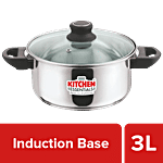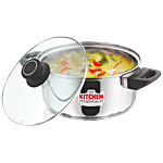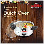No Question askedKitchen Essentials Stainless Steel Dutch Oven - Cook & Serve, With Glass Lid, Induction Base, 20 cm