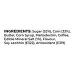 Sugar (52%), Corn (33%), Butter, Corn Syrup, Maltodextrin, Coffee, Edible Mineral Salt (1%), Flavour, Soy Lecithin (E322), Antioxidant (E319)