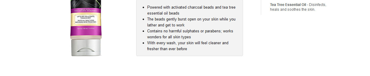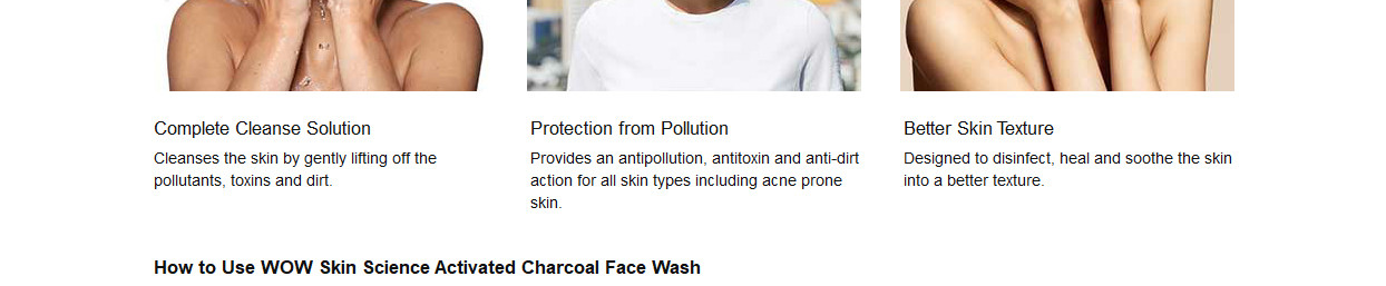 WOW Skin Science Activated Charcoal Face Wash is a premium antipollution, antitoxin & anti-dirt face wash with activated charcoal beads to trap pollutants, toxins, dirt & impurities, and tea tree essential oil beads to disinfect, heal & soothe the skin. Its formula being free of harmful parabens and sulphates works wonders on all skin types. Works wonders for all skin types. With every wash, your skin may feel cleaner and fresher than ever before.