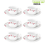 Larah by Borosil Chai/Cups & Saucers - Verona, HT12CS14VRO1, 140 ml (Set of 12)