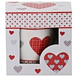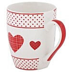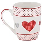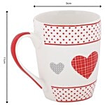Rslee Chai / Coffee/ Tea-Milk Mug - White With Red Dot & Heart Print, 350 ml
