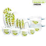 • Package Content: Full Plates: 6 Pcs.; Quarter Plate: 6 Pcs.; Veg Bowl: 6 Pcs.; Soup Bowl: 6 Pcs.; Spoons: 6 Pcs.; Round Platter: 1 Pc., Casserole (Medium): 2 Pcs.; Casserole Lid (Clear): 2 Pcs.