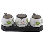 No Question askedDP BB 603 Condiment Set with Tray - Black & White, Ceramic & Plastic, Plain