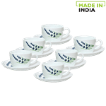 LaOpala Chai/Opalware Cup & Saucer Set - Princess, English lavender, 150 ml (Set of 6)