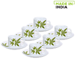 LaOpala Chai/Opalware Coffee Cup & Saucer Set - Regular, Trinity Green, 120 ml (Set of 6)