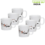 LaOpala Chai/Opalware Coffee Mug Set - Scarlet Blooms, 180 ml (Set of 6)