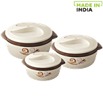Nayasa Floriana Insulated Casserole For Roti/Chapati - Brown, 3 pcs (1 L + 1.5 L + 2 L)