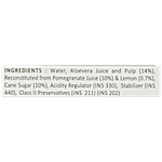 Water, Pomegranate Juice (16%), Sugar(12. 5%), Aloevera Juice & Pulp (12%), Lemon Juice (1%), Iodized Salt, Acidity Regulator (E330), Stabilizer(E440), Class Ii Preservative (E211), (E202).