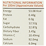 Nutrition per gram: 100ml Energy: 53.08 Kcal Protein: 0.40 g Fat: 0.0 g Sugar: 12.52 g Carbohydrate: 12.87 g Dietary Fiber: 3.45 g Vitamin C: 10.49 mg Sodium: 92.0 mg Calcium: 6.0 mg