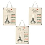 DP Gift/Paper Carry Bag - Small, Cream, Paris Le Timbre Print BB 393 S, 3 pcs