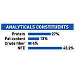 Analytical constituents: Protein: 27%, Fat Content: 13%, Crude Fibres: 4%, NFE: 43.2%