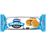 Cremica Vanilla Creme Biscuits offer a delightful blend of smooth vanilla crème nestled between crisp biscuit shells. Free from trans fat and artificial colours, these sweet treats are perfect for satisfying small cravings. Enjoy them anytime as a quick indulgence or pair with tea for a comforting break. Also available in Chocolate and Strawberry flavours.