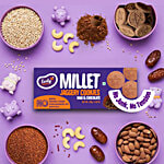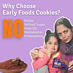 This product is recommended for little ones who are ready for all grains and nuts. Best if they have 1-2 teeth to chew. If not, you can always dip it in milk to help them bite. This is a freshly made organic Ragi Jaggery cookies with the goodness of pure butter and organic raw non-alkalized cacao powder. The freshness is so good and also, the little children need to be fed fresh foods for maximum nutrient absorption, just like how your grandma or mom fed you as a child. It is made from organically certified whole grains and 0% maida. No baking powder, no soda or raising agents, no egg, 0% sugar, sweetness from organic jaggery & dates. Also, no hydrogenated fats, and it is made from pure cow butter. No preservatives or artificial flavours are added.