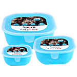 Saura Easy Lock Square Containers - Plastic, Microwave & Freezer Safe, Big, Medium, Small, Blue, 3 pcs