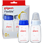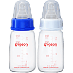 Pigeon Baby Peristaltic Nursing Bottle PP - 0+ Months, Nipple S, Blue & White, 120 ml (Pack of 2)