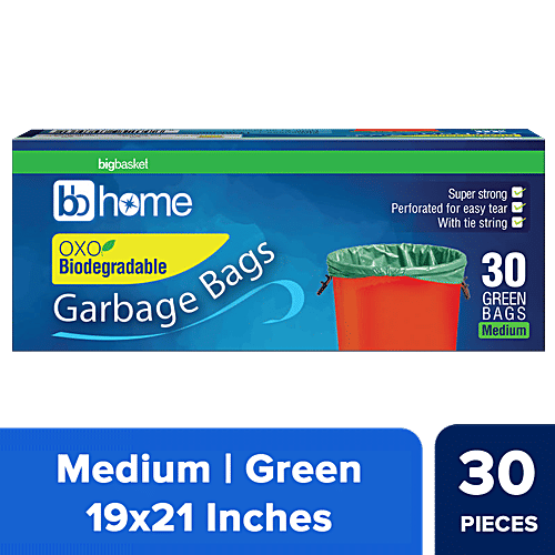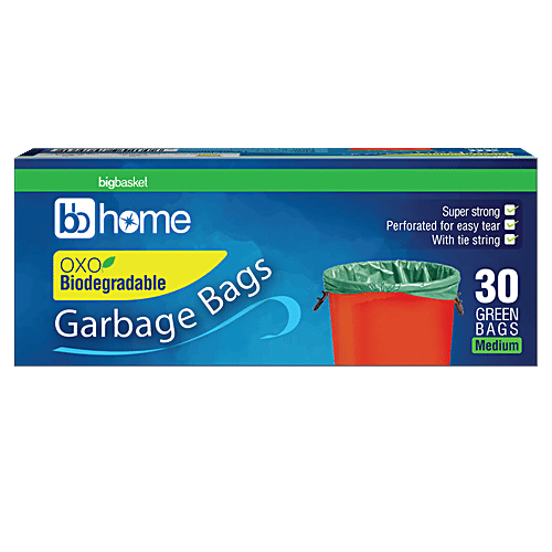 bb home Garbage Bags - Medium, Green, 48 x 53 cm, Oxo-Biodegradable, 30 pcs