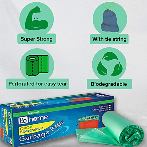 No Question askedbb home Garbage Bags - Medium, Green, 48 x 53 cm, Oxo-Biodegradable