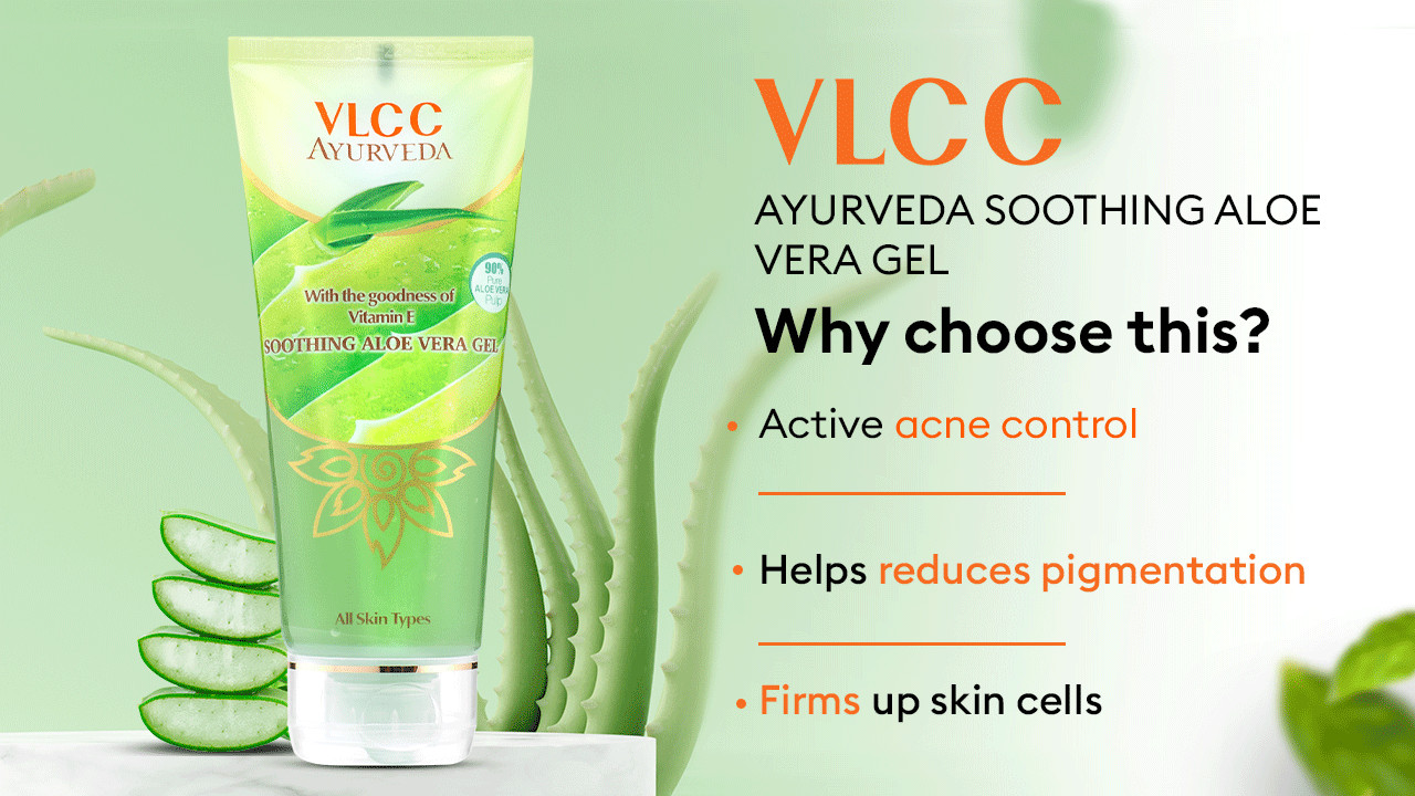 Vlcc Ayurveda Aloe Vera Gel is enriched with the goodness of Vitamin E that deeply nourishes the skin and corrects skin damage. Its cooling and soothing properties moisturise and hydrate the skin and provide intense skin protection. Formulated with the goodness of pure Aloe Vera pulp, it actively controls acne, helps reduce pigmentation, and helps reduce pore size.