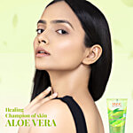 Vlcc Ayurveda Aloe Vera Gel is enriched with the goodness of Vitamin E that deeply nourishes the skin and corrects skin damage. Its cooling and soothing properties moisturise and hydrate the skin and provide intense skin protection. Formulated with the goodness of pure Aloe Vera pulp, it actively controls acne, helps reduce pigmentation, and helps reduce pore size.