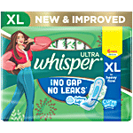 Whisper Ultra Up To No Gap No Leaks allows you to have a stress-free day, even during heavy flow days! With Curvewear Technology, the cushiony centre adapts to your unique shape to lock every drop of blood into its absorbent core. These pads are more than 20% longer than regular pads. These pads have a soft new top layer that feels comfortable against your skin. Available with disposable wrapper.