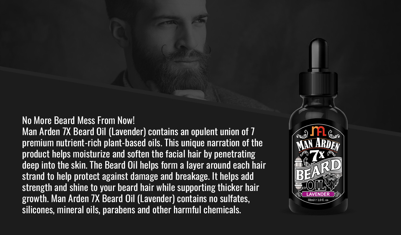 Man Arden ultimate 7X beard oil contains 100% natural & Pure 7 super-ingredients that will moisturize, promote faster beard growth, soften and condition your beard, moustache or goatee and make sure that it looks and feels incredible! Man Arden 7X beard oil is a seductive and irresistible lavender blend fragrant fused with the care to transform wild undernourished beards into soft, shiny and tameable beards. Our beard oil promises to moisturize, treat split ends, eliminate nasty flakes, De-tangles hair, Promote faster beard growth, Add glorious shine and so much more! You can even use it on dry scalp. Face or hair! Keeps Your Beard & Mooch Skin Feeling Its Best: Our easy to use formula supports the overall health of your beard and helps keep your skin from itching too. Use it in conjunction with our Beard Wash and Beard Wax / Beard Balm for the best results.