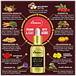 Organic Moroccan Argan Cold Pressed Oil, Rosehip Cold Pressed Oil, Carrot Seed Oil, Virgin Golden Jojoba Cold Pressed Oil, Evening Primrose Oil, Macadamia Cold Pressed Oil, Frankincense Essential Oil, Clary Sage Essential Oil, Helichrysum Essential Oil, Geranium Essential Oil, Lavender Essential Oil.