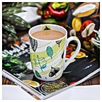 Raja Chai/Bone China Milk/Coffee Mug - Green & Black Floral, 300 ml